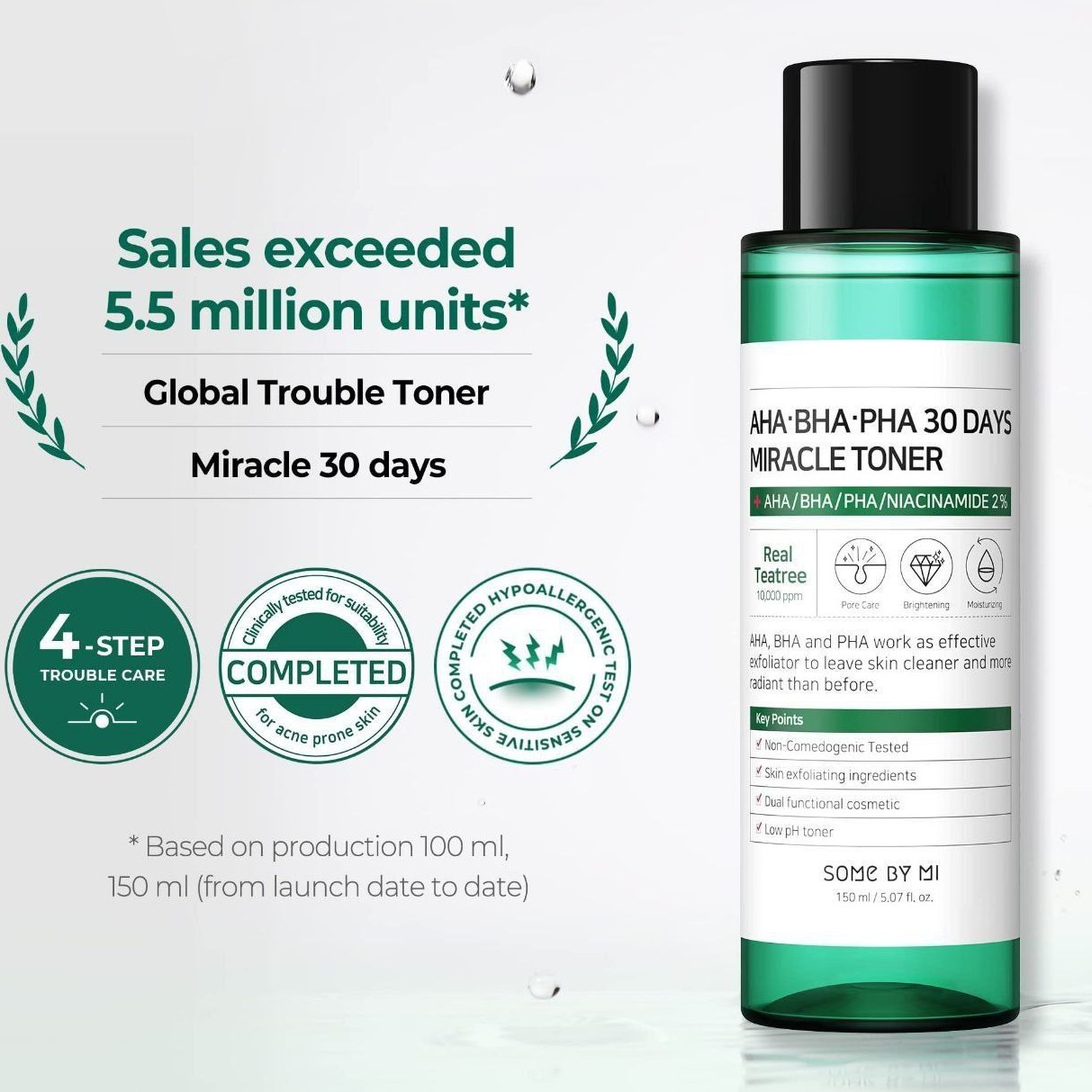 تونر میراکل یکی از محبوبترین و پرفروشترین محصولات لاین “معجزه 30 روزه” برند سام بای می، مناسب برای پوستهای مختلط، چرب و حساس میباشد. که با خاصیت لایه برداری ملایم سبب از بین رفتن سلولهای مرده و چربیهای اضافه پوست شده، در نتیجه به طور چشمگیری موجب کاهش جوشهای سر سیاه و سر سفید و جمع شدن منافذ میگردد، این تونر سام بای می با خاصیت آبرسانی که دارد از خشک شدن پوست جلوگیری کرده، دارای pH پایین بوده و فاقد عطر، رنگ، سولفات، پارابن، الکل، سیلیکون و روغنهای معدنی میباشد.